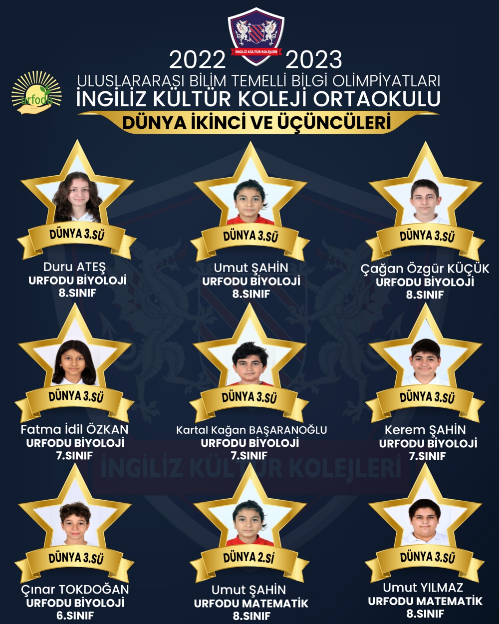 Batıkent Ingiliz Kültür Koleji Ortaokulu olarak kültürler arası etkileşimi geliştirmek ve zenginleştirmek, öğrencilerin bilgilerini uluslararası platformda değerlendirmek amacıyla URFODU XIX. Uluslararası Bilim Temelleri Bilgi Yarışması’nın Biyoloji ve matematik branşlarından ortaokul öğrencilerimizi hazırlayıp katılım gerçekleştirdik.